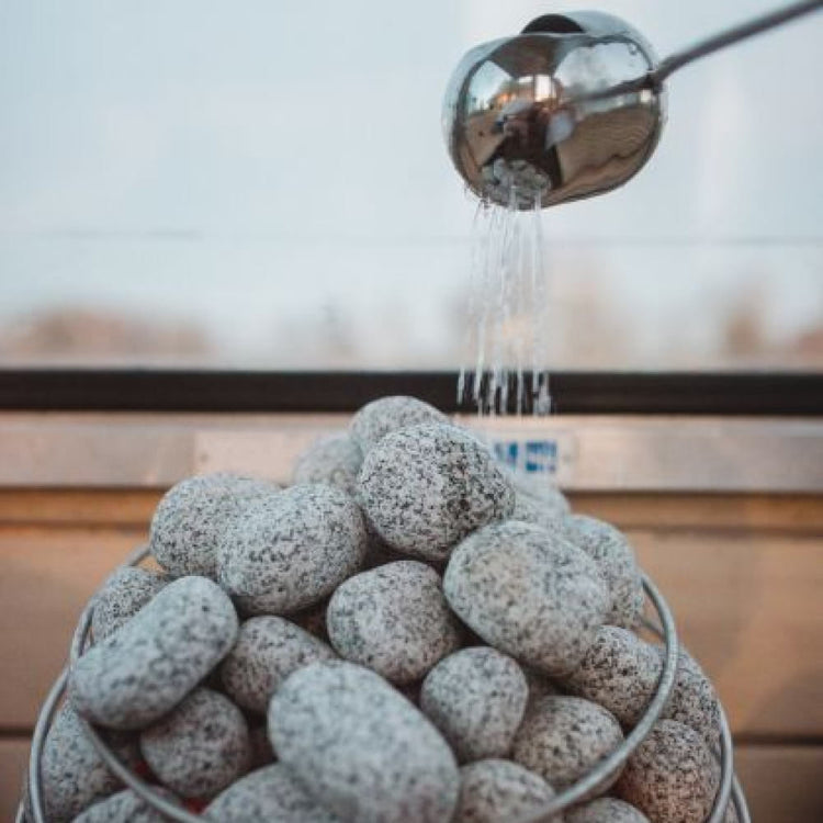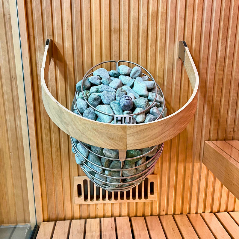 • 132 lbs of 2" - 4" (5-10 cm) round Olivine sauna stones